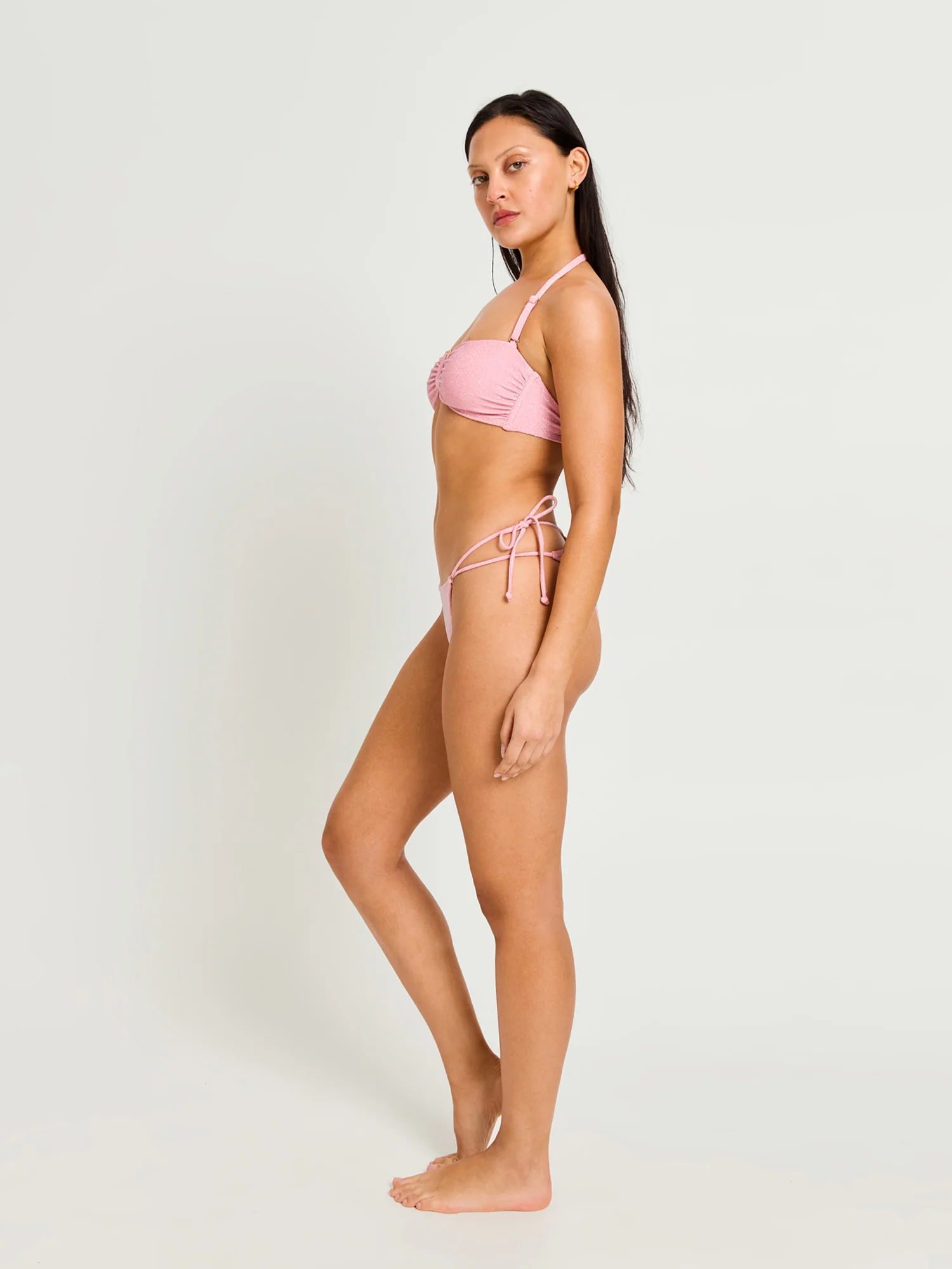 Swimwear Shimmer Tie Back Bandeau Top & Hi-Leg String Bottom Set Peony Pink